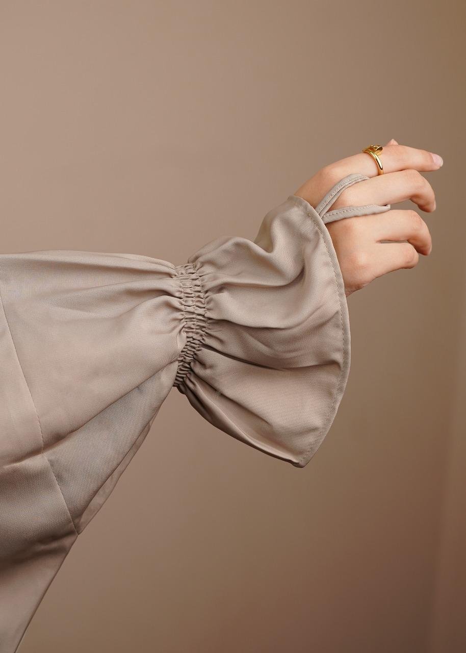 Ruffled Cuff Hooded Jilbab – Parisian Taupe Two-Piece Set