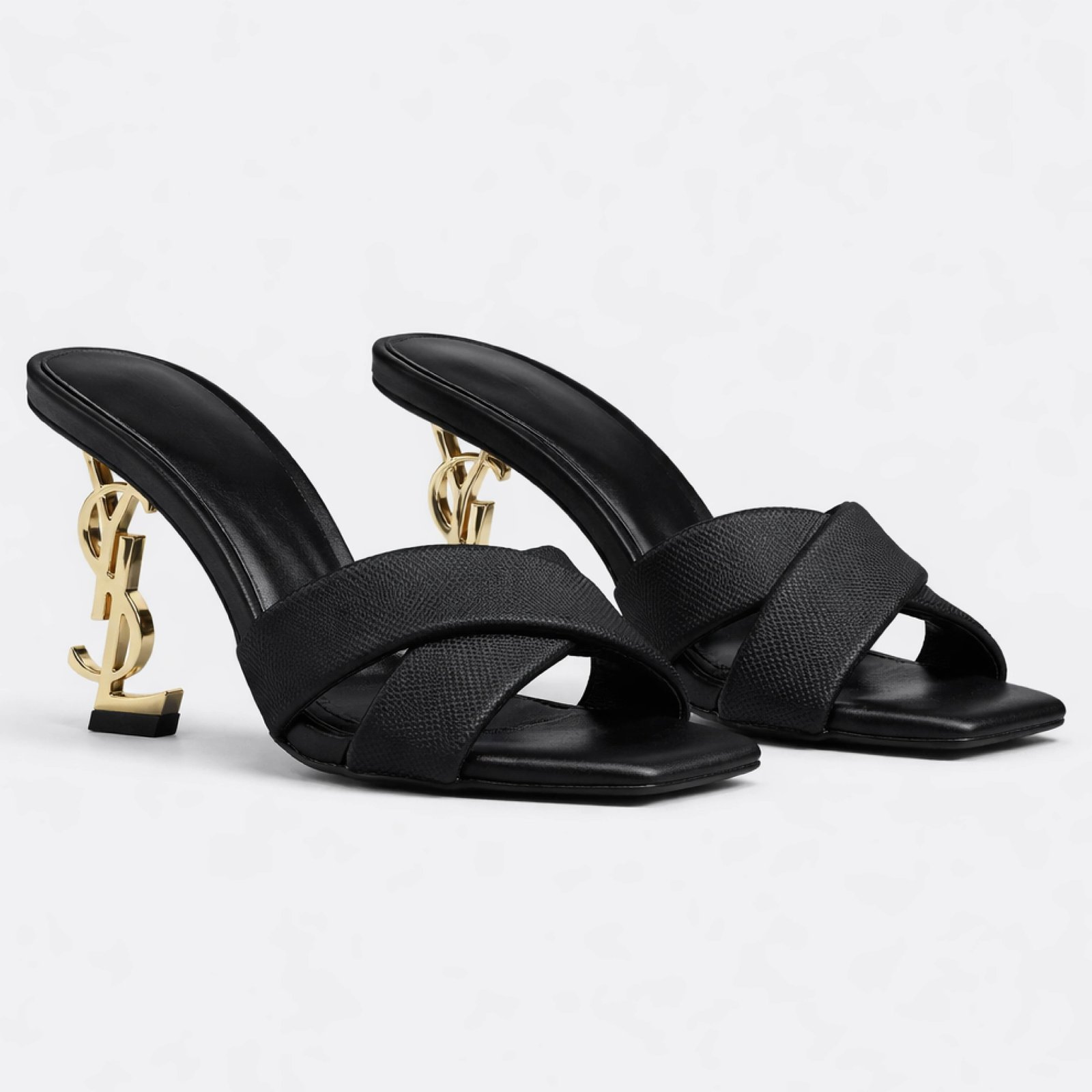 - Structural Monogram Heel: The standout feature is the sculpted, interlocking gold-tone monogram heel, providing a unique architectural foundation and an instantly recognizable silhouette.