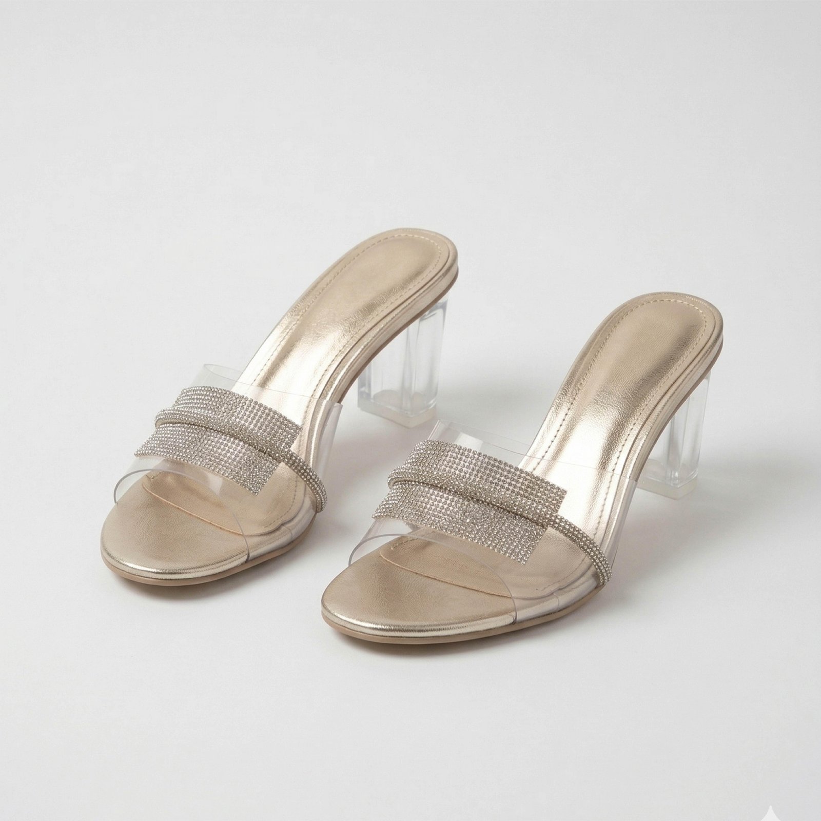 Step into elegance with Golden Transparent Heels for Womens, the perfect combination of style, sophistication, and comfort.