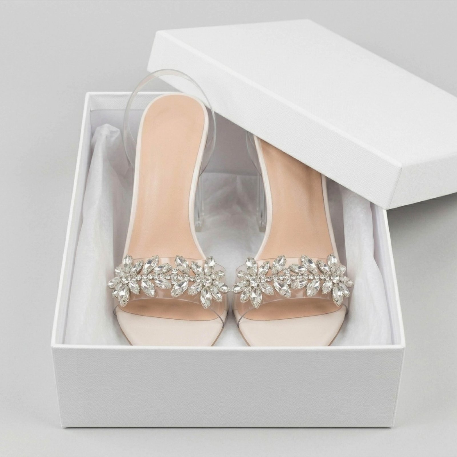 Crystal-Embellished Clear Block Heel Sandals